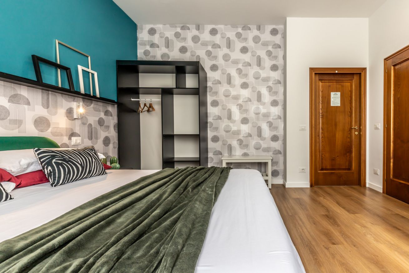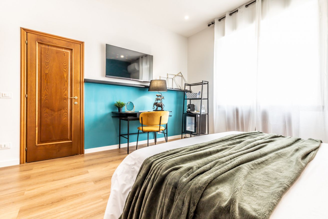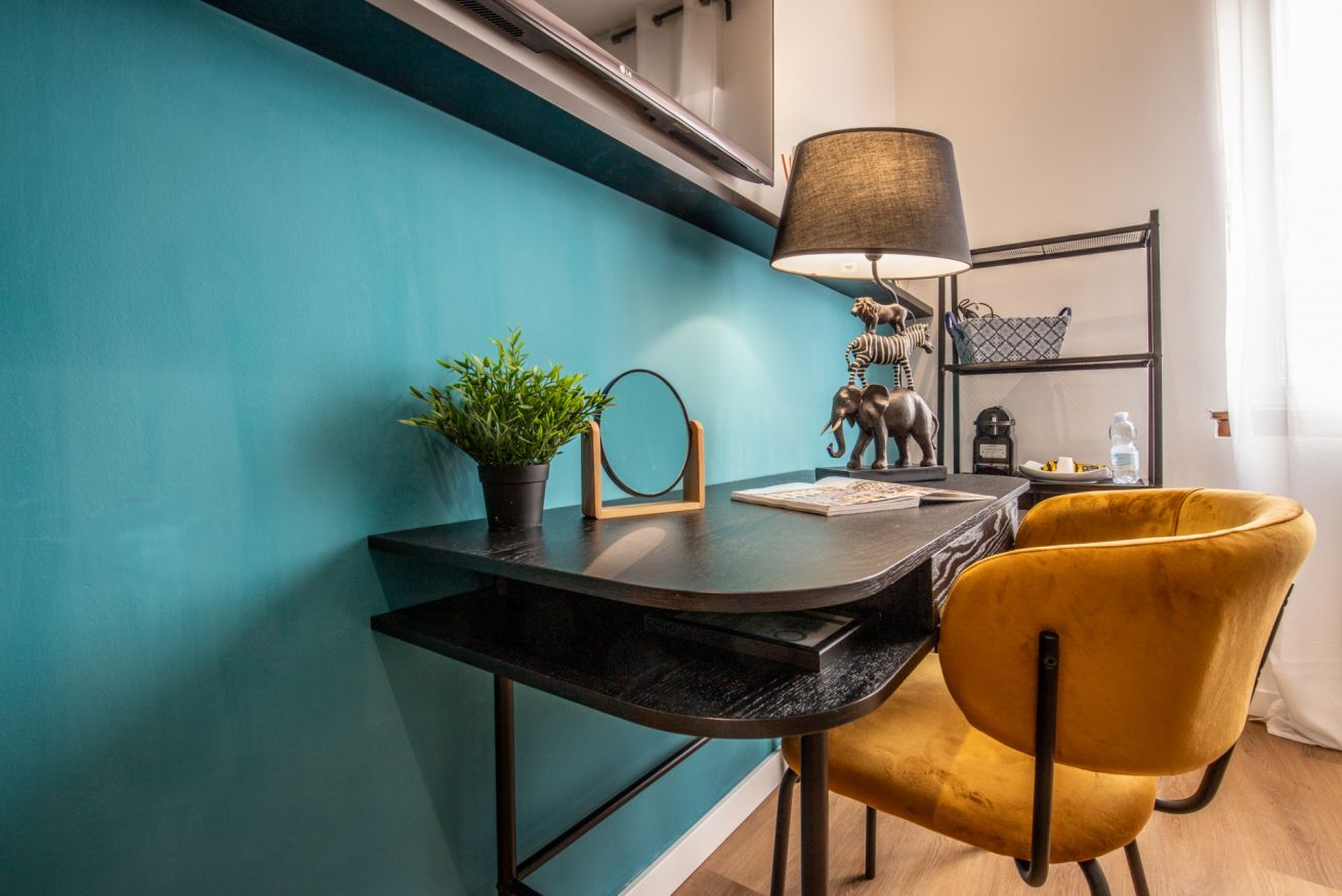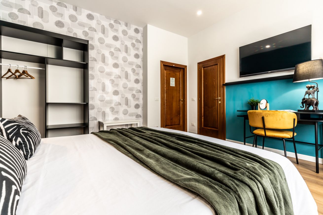 Questa camera, pensata per soddisfare ogni tua esigenza, ti offre il massimo comfort e funzionalità. Un ampio letto matrimoniale ti attende per un sonno rigenerante, mentre il bagno privato completo ti regala momenti di piacevole relax. L'angolo scrivania, ideale per lavorare, studiare o semplicemente lasciarsi ispirare, completa l'allestimento, offrendoti uno spazio dedicato alla tua creatività e concentrazione.