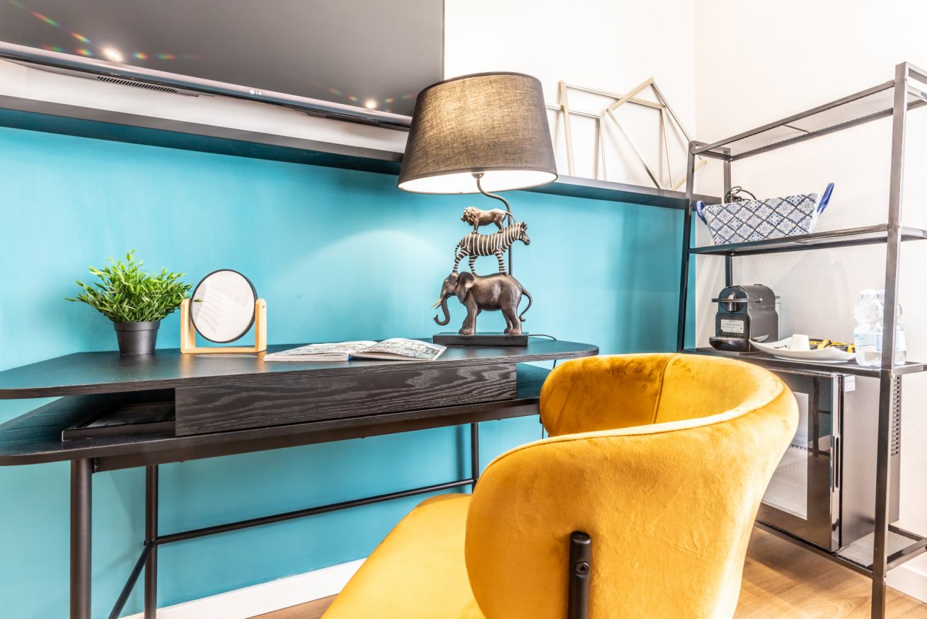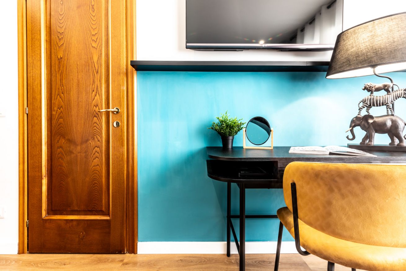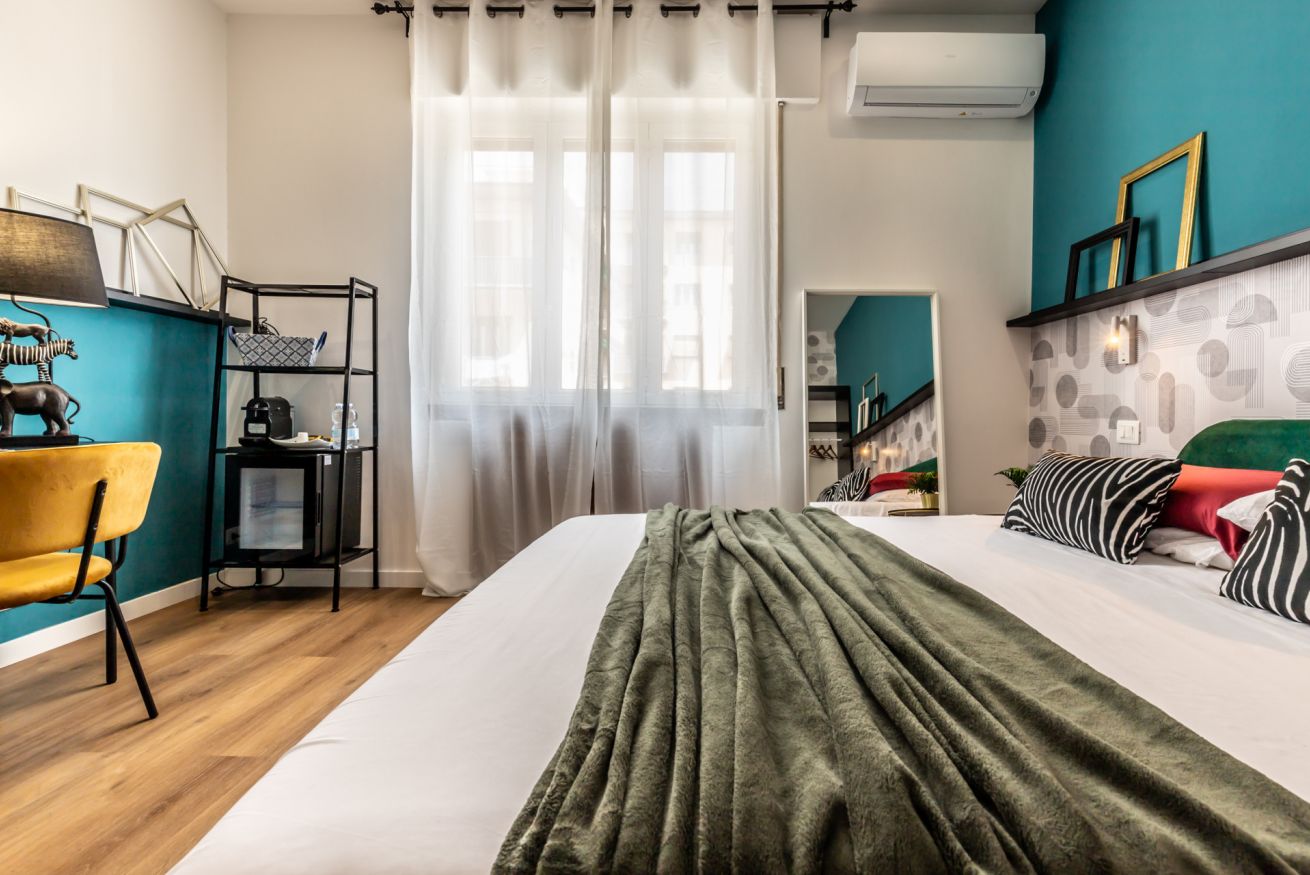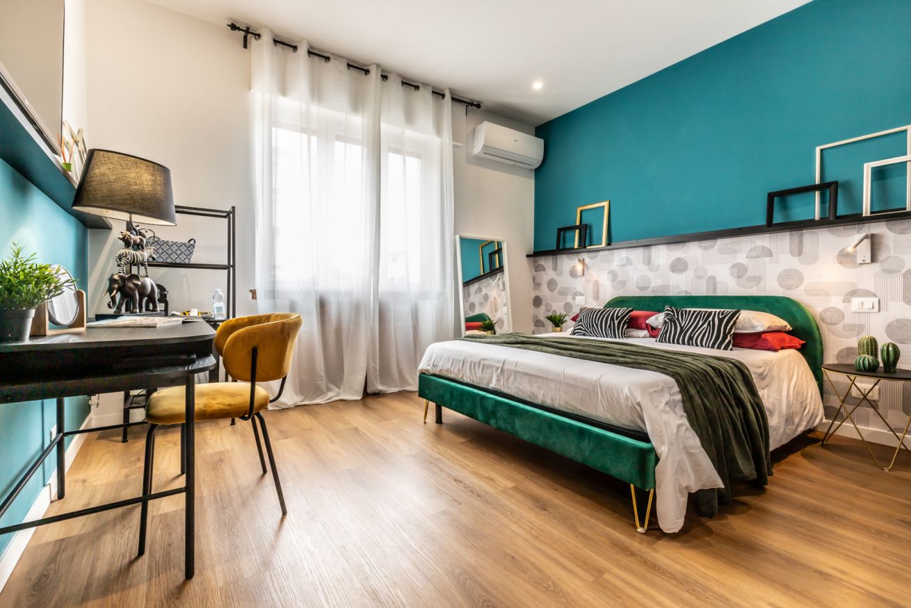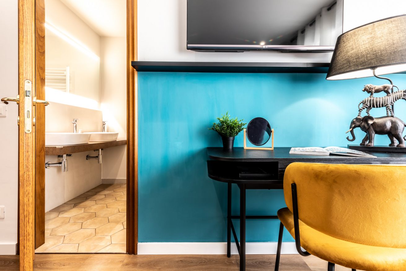 Questa camera, pensata per soddisfare ogni tua esigenza, ti offre il massimo comfort e funzionalità. Un ampio letto matrimoniale ti attende per un sonno rigenerante, mentre il bagno privato completo ti regala momenti di piacevole relax. L'angolo scrivania, ideale per lavorare, studiare o semplicemente lasciarsi ispirare, completa l'allestimento, offrendoti uno spazio dedicato alla tua creatività e concentrazione.